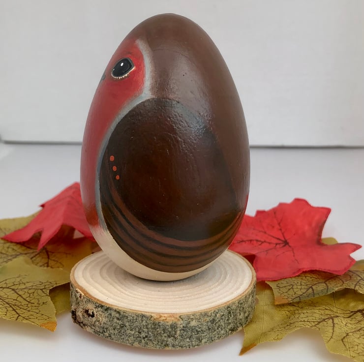 The egg is made from birch wood and measures 84mm x 55mm ( 3.3/8 x 2.1/4 inches) which is approximately the size of a small goose egg.