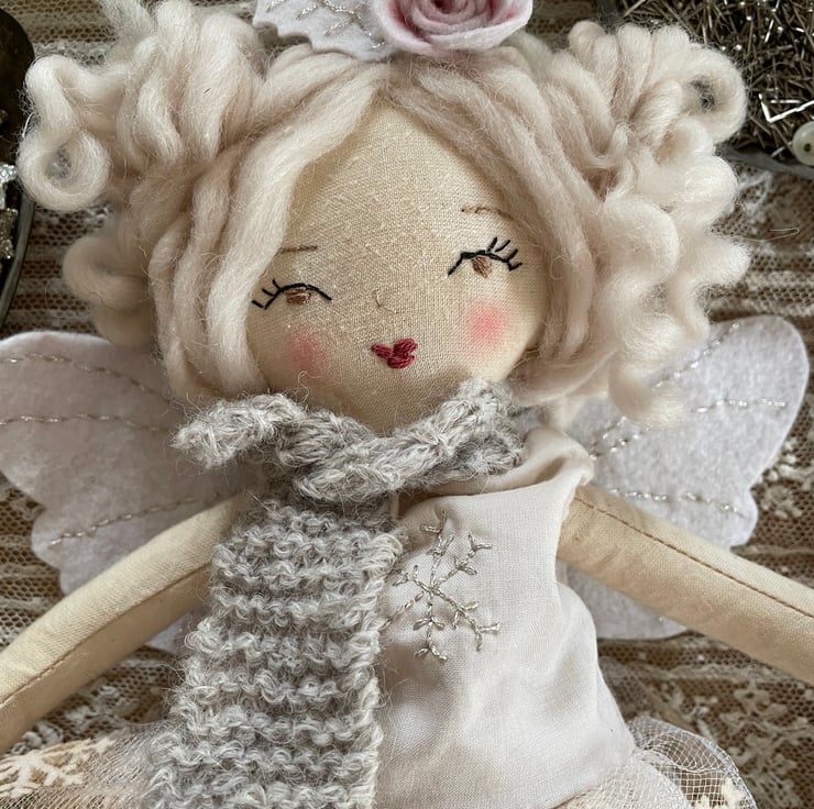 Embroidery floss for face, wings and snowflake on bodice
