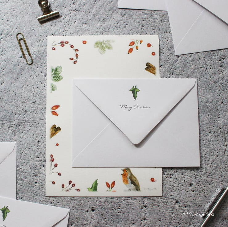 The Christmas hedgerow berry design for this writing paper and envelope set has been created using our own original artwork.