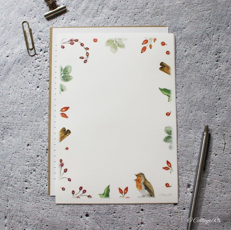 - 10 sheets of A5 letter writing paper with the Autumn hedgerow design around the border.