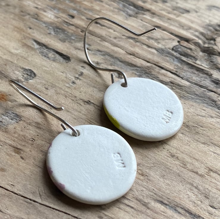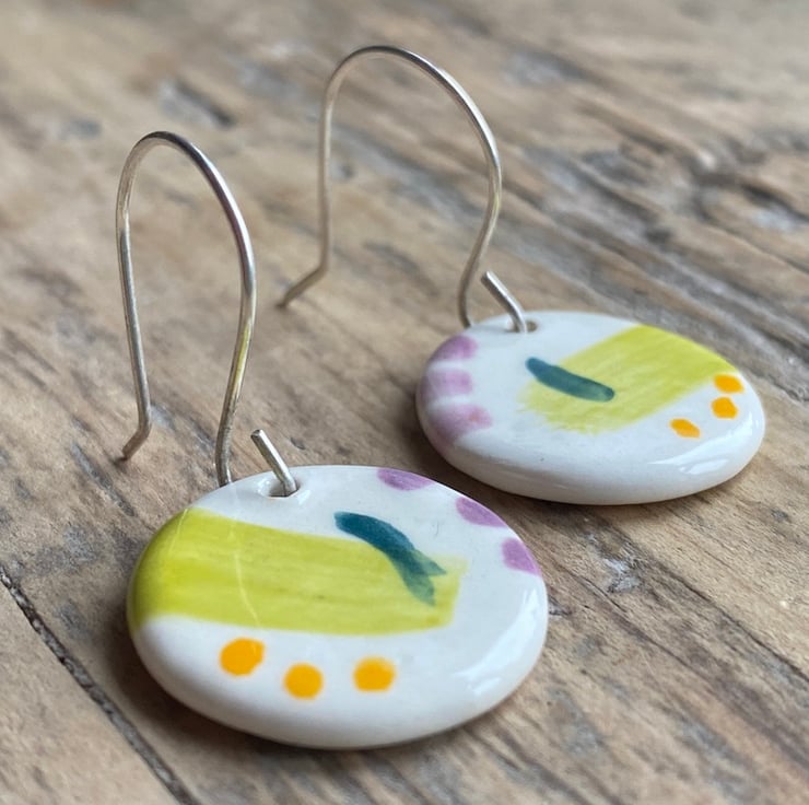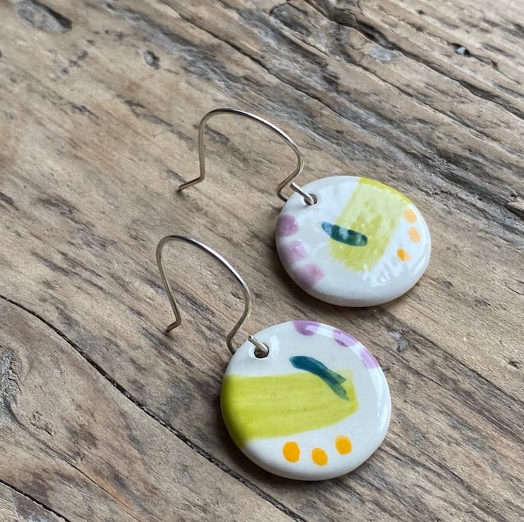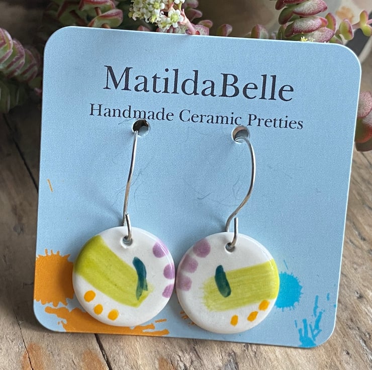Stunning handmade ceramic round drop earrings from the Painterly range here at MatildaBelle.