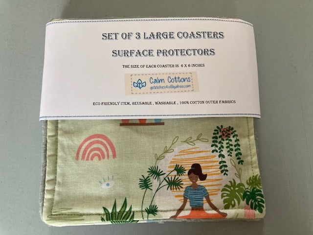 Having made some small make up wipes using this fabric, I thought it would be a good idea to make larger coaster for using under heavy items that may scratch surfaces.