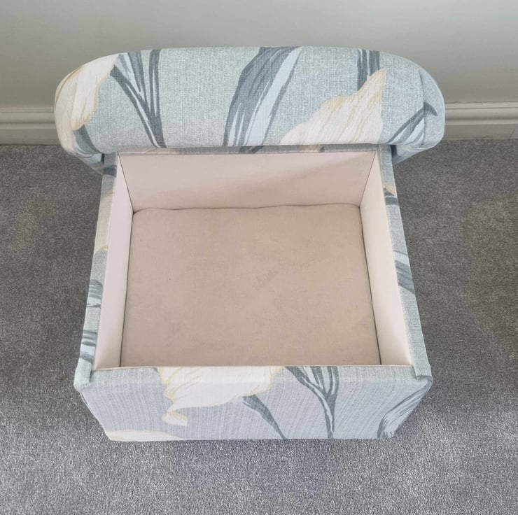 I am a professional upholsterer with over 33 years and have made this storage footstool myself, using Laura Ashley Lilium Grey Green fabric.