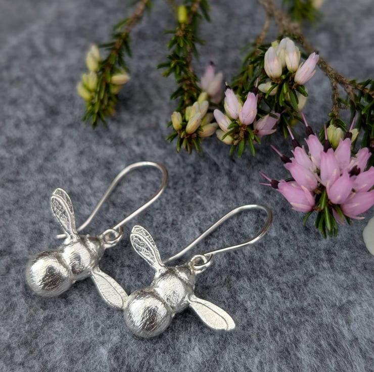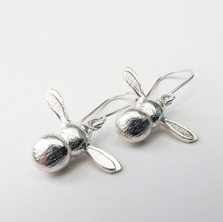 Each bee measures about 25mm across and 15mm long. The total earring length from top of wire is about 35mm which is longer than a standard hook wire - just add a note to your order if you would prefer these Bees on a shorter hook!