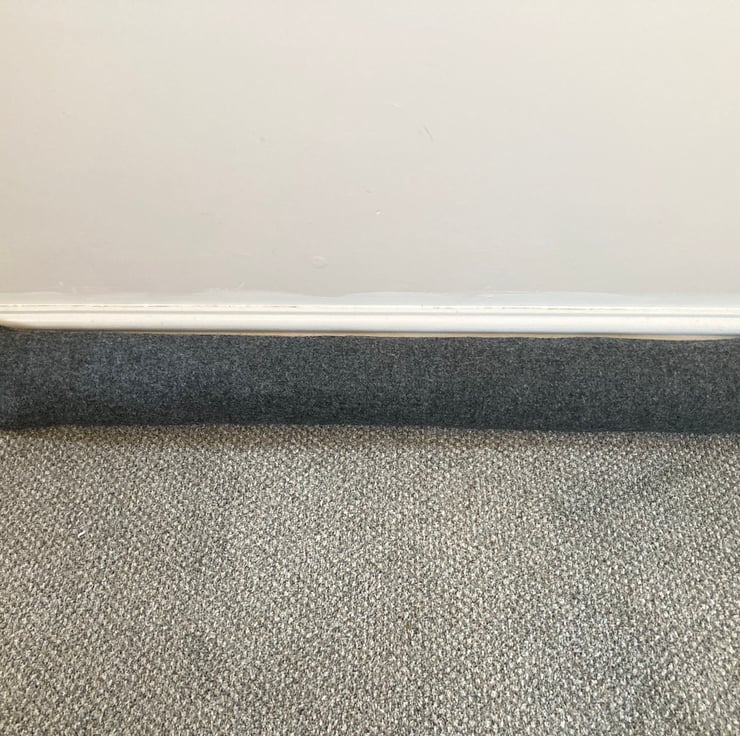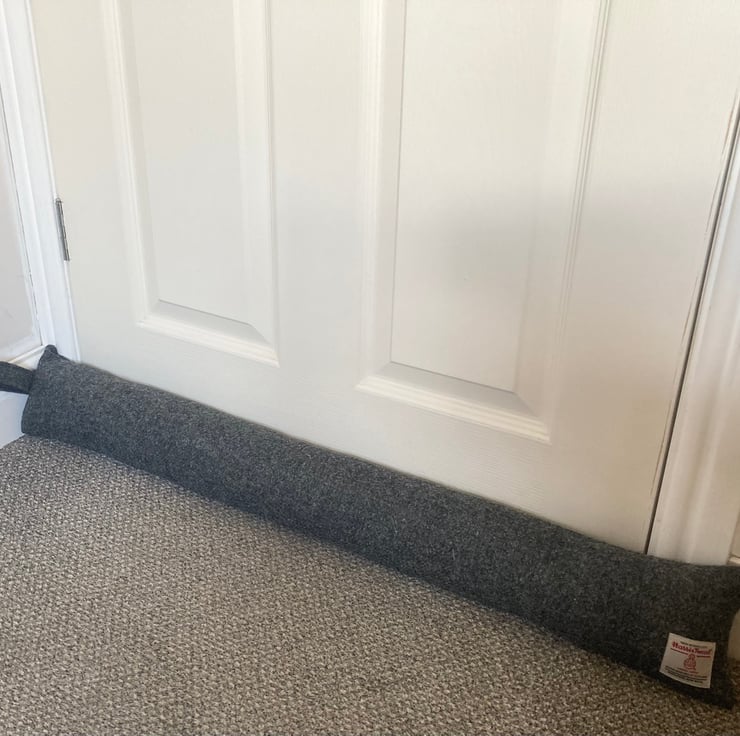 A handmade Harris Tweed draught excluder in a charcoal grey plain design. Ideal for insulating draft spots and reducing heating costs!