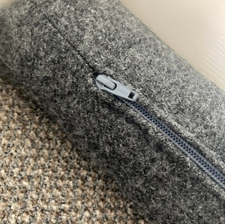 This draught stopper can be finished with either a zip in the centre of the back piece, as a design feature, or sewn sealed at the end.