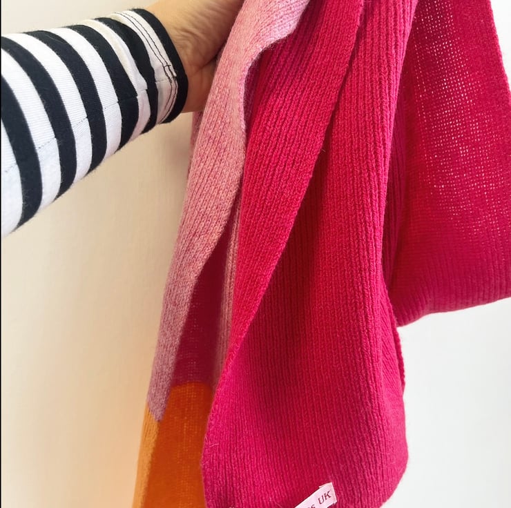 Knitted by hand by me on a hand flat knitting machine, then hand washed & pressed.