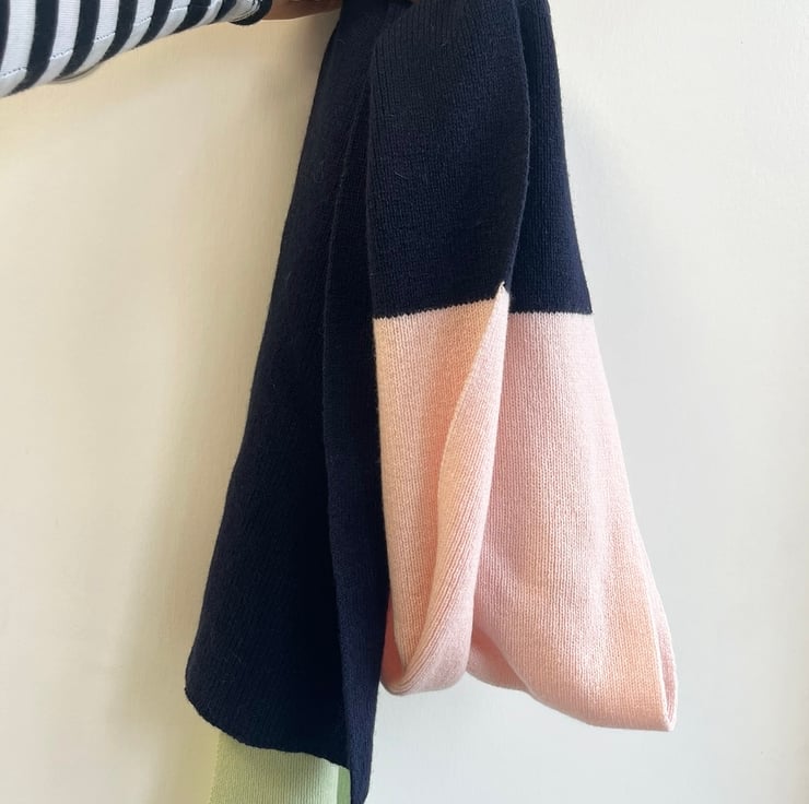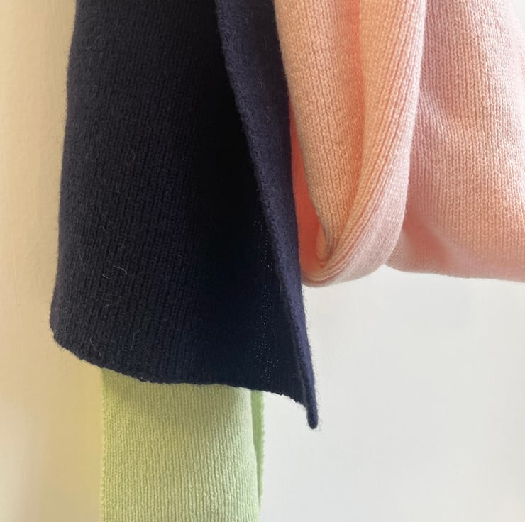 Knitted by hand by me on a hand flat knitting machine, then hand washed & pressed.