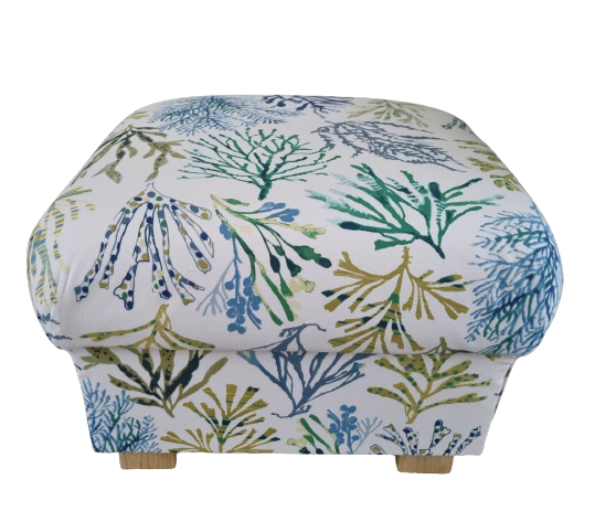 I am a professional upholsterer with over 33 years and have made this footstool myself, using Prestigious Coral Seaweed fabric.