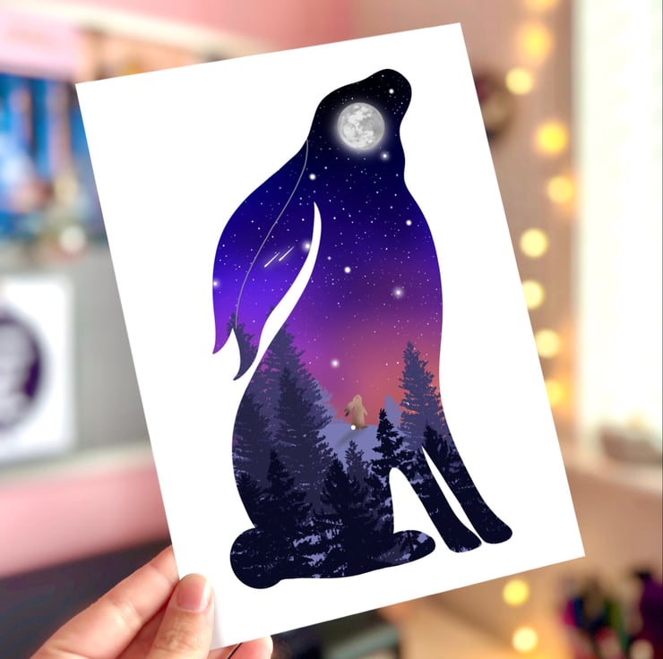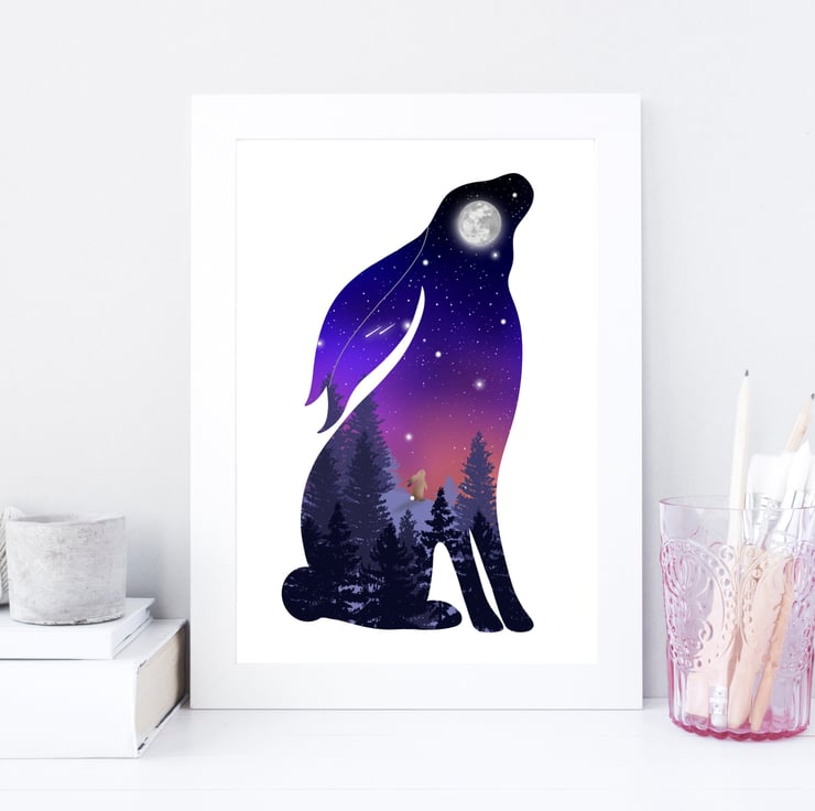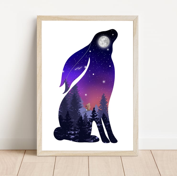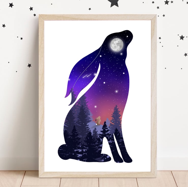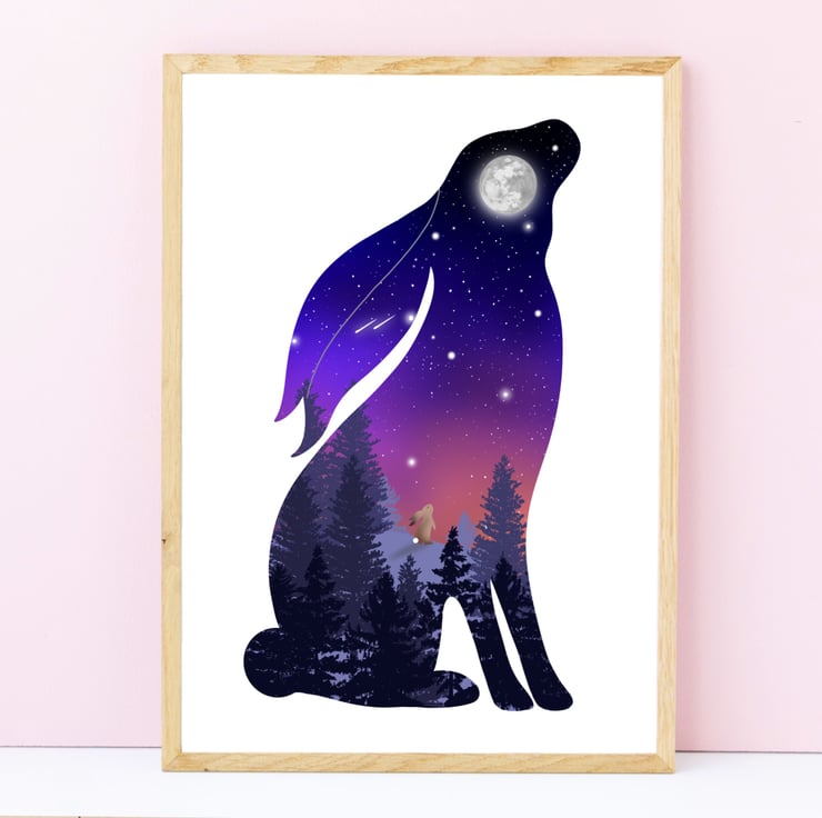 This print was inspired by my love of wildlife and the night sky. I grew up in the countryside and wanted to capture the beauty of its magic and calmness in to my artwork and bring it in to your home too.