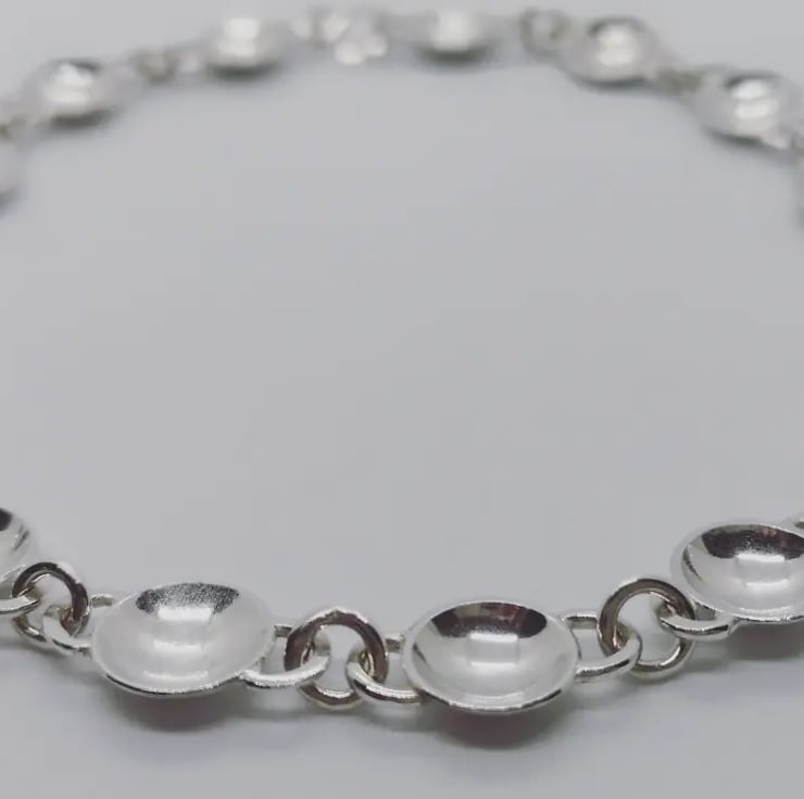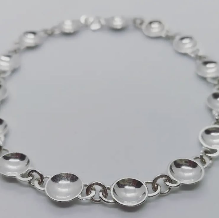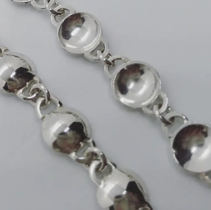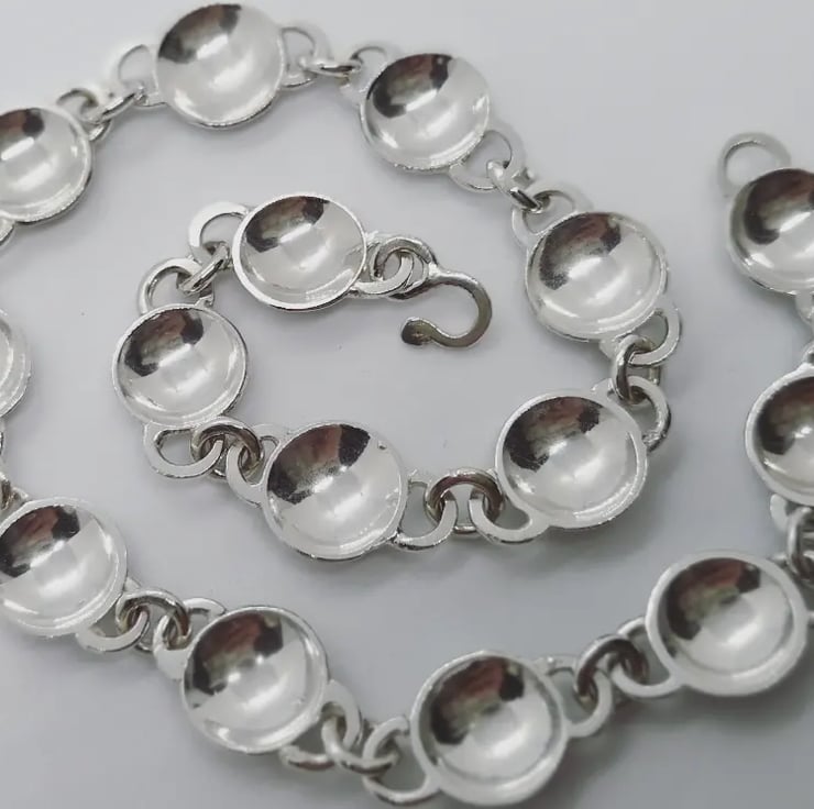 I love chain making and the way these domed links play with the light. I hand make all of my catches and fastenings to incorporate them into the design, and the catch on this is barely visible once fastened.