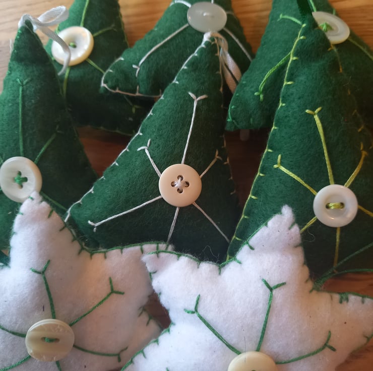 A collection of 11 handmade,scandi style tree decorations.