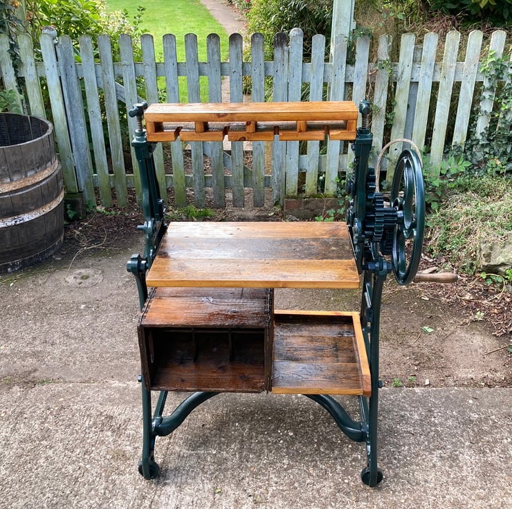 I wanted to do something very different with this old mangle and came up with this idea for it, keeping everything about it vintage was a challenge but I think it works well.
