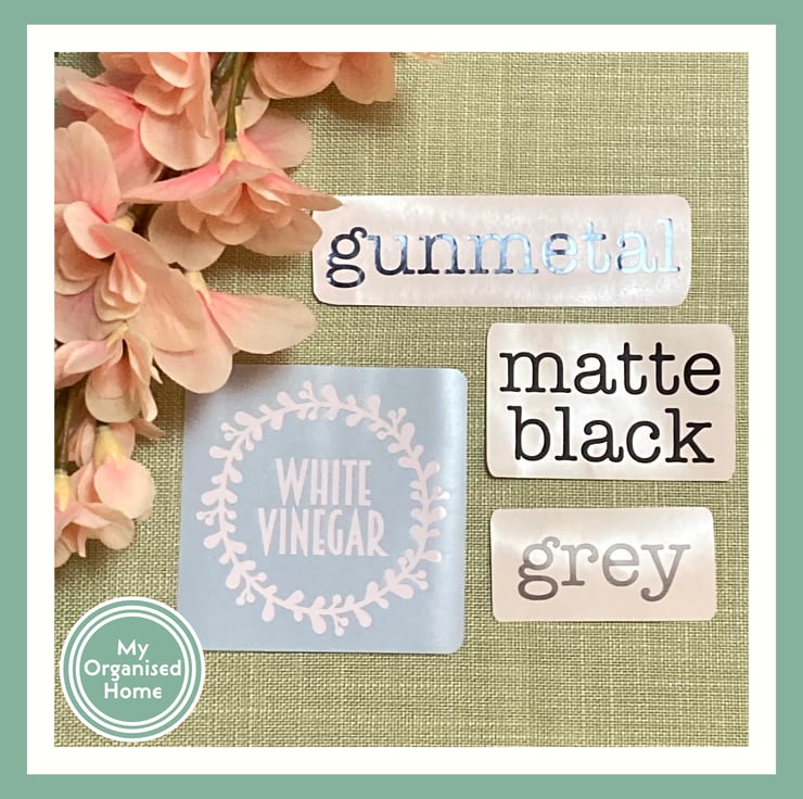 Made to order labels for your own containers in the laundry / utility room, in white, silver, grey, gold, rose gold, gunmetal or matte black.