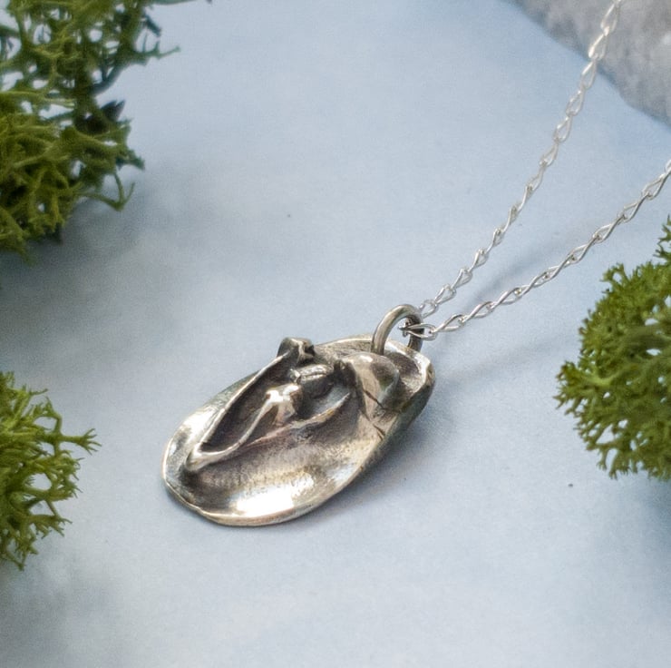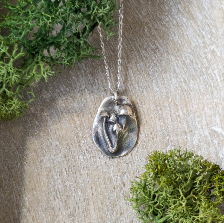 I’ve handcrafted this piece using recycled silver clay, shaping and refining it to bring out the intricate details of the toadstools. After firing, the pendant becomes a solid piece of fine silver, measuring 1.8x1.4cm and finished with a sterling silver jump ring and an 18" diamond cut curb chain, both crafted from recycled silver.