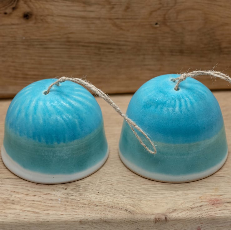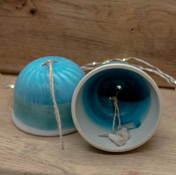 There are 2 ceramic clappers inside, the bell is hand tied with jute string and makes a lovely ding!