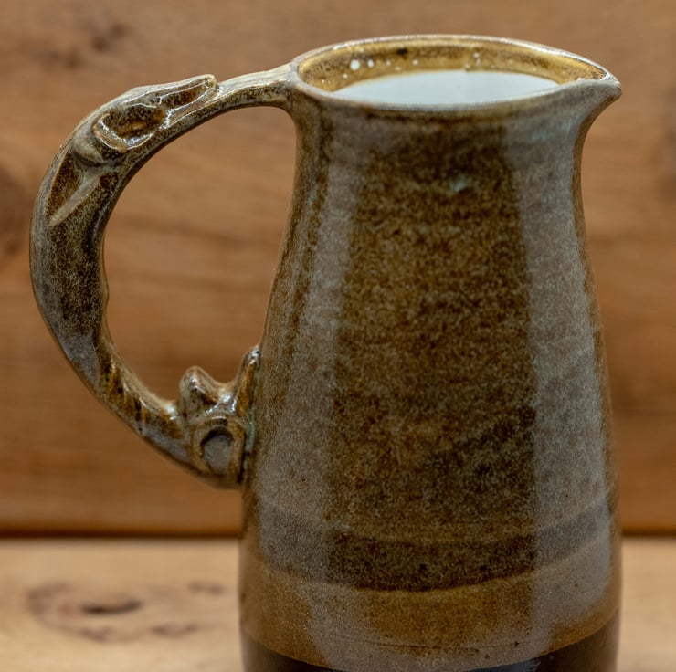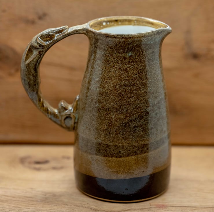 This jug has been fired to 1250 degrees with a gorgeous glaze combo that is fast becoming my fave for this design - I call it tortoiseshell, it's a combination of oilspot and woodash.