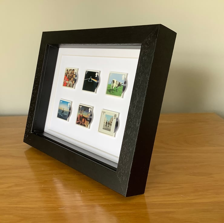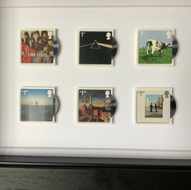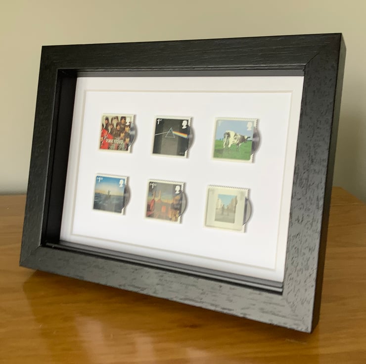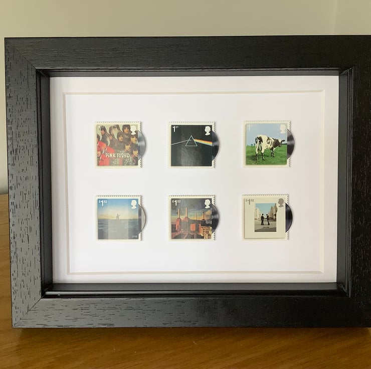 Framed genuine Royal Mail special edition postage stamps of 6 iconic album covers by Pink Floyd through their amazing career, issued in 2016. This would be a great gift for any Pink Floyd fan.