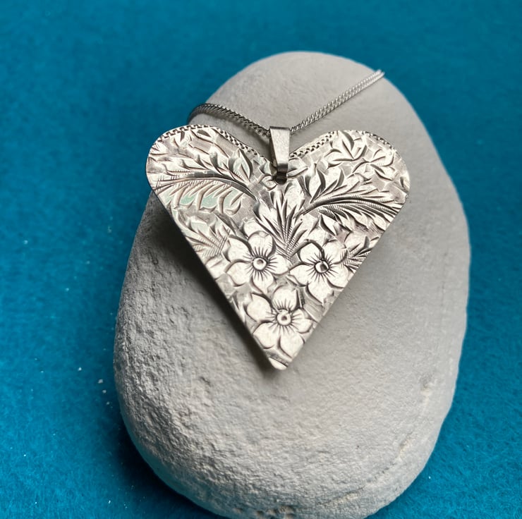 This necklace was saw pierced out of a lovely 1915 cigarette case. It measures approx. 3.7 by 3.8cm and comes on an 18 inch/46cm silver chain.