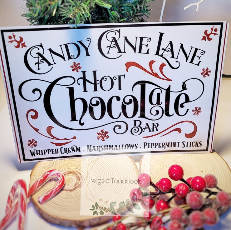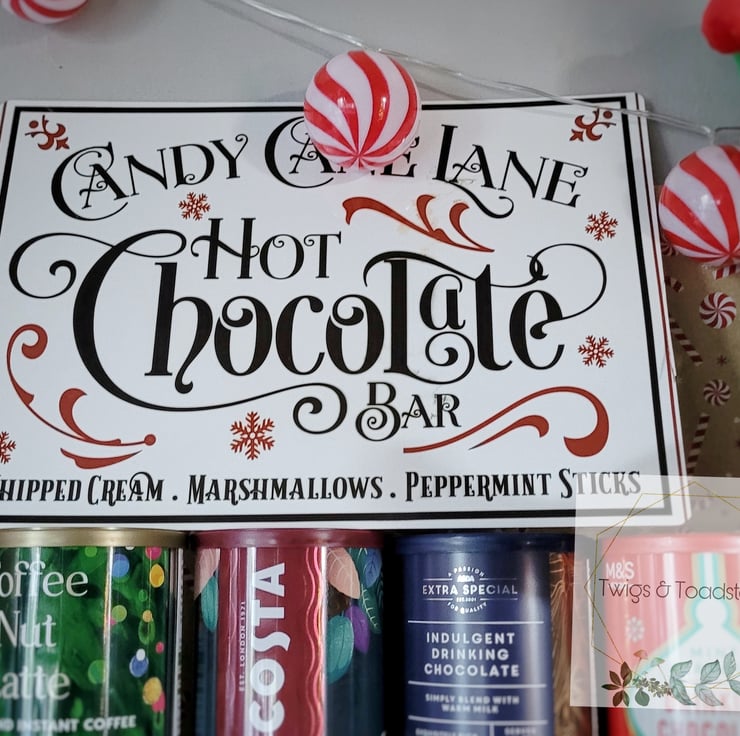 Candy cane lane hot chocolate station sign