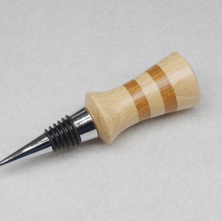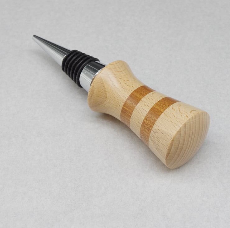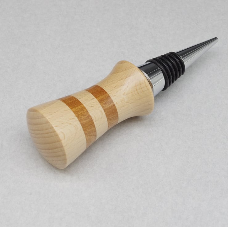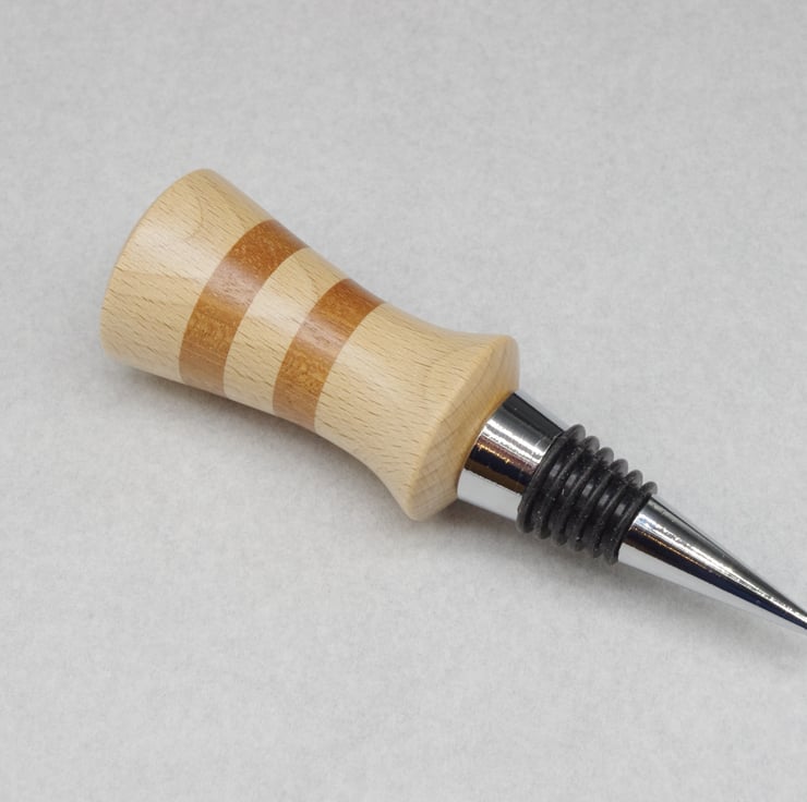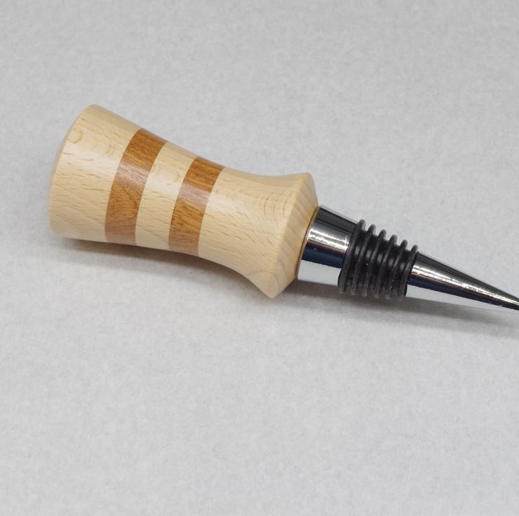 A delightful hand-turned bottle stopper made from Scottish Beech with Mahogany Stripes.
