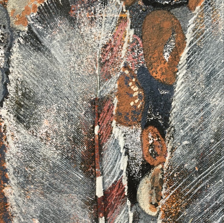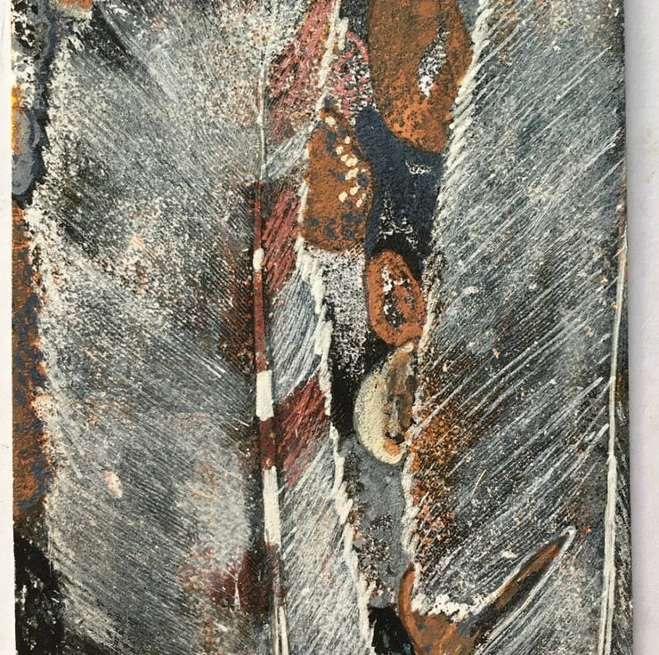 This small acrylic painting measures 3.5” x 2.5” (aceo/art trading card size) and is a close study of feathers on the beach. This is a unique hand painted piece of collectible, original art. It will be carefully packaged and sent postage free to UK destinations.