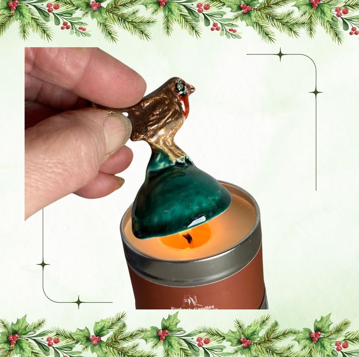 Hand made ceramic collectible Robin, a fun ornament that doubles as a candle snuffer. Stands 55mm.