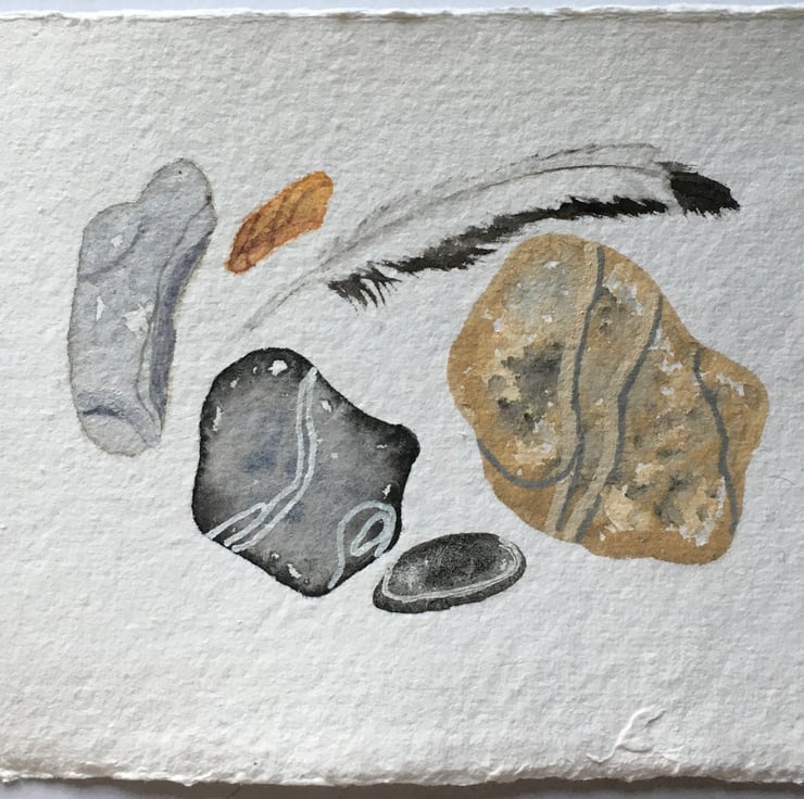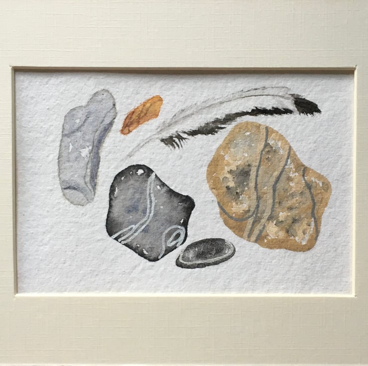 This watercolour is hand painted using Artist quality materials, inspired by beach finds. It measures 15cm x10cm approx, and will be sent with a mount in a cello bag within a sturdy envelope. Postage is free to UK destinations.