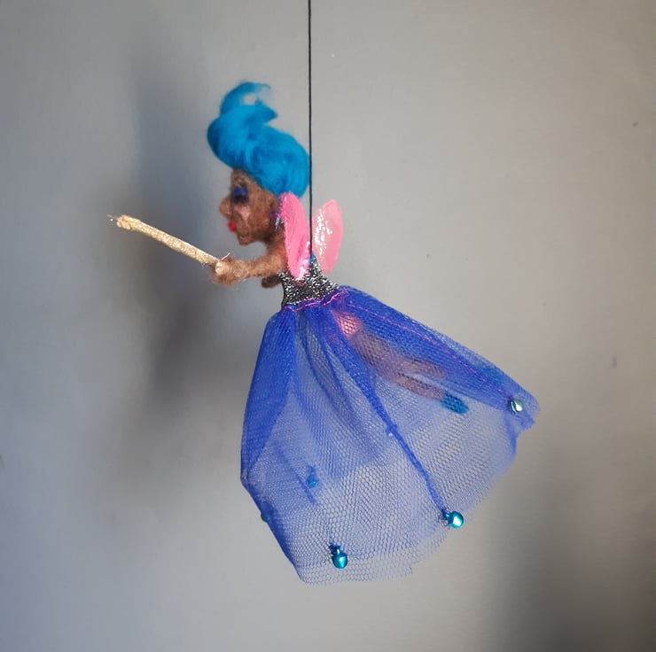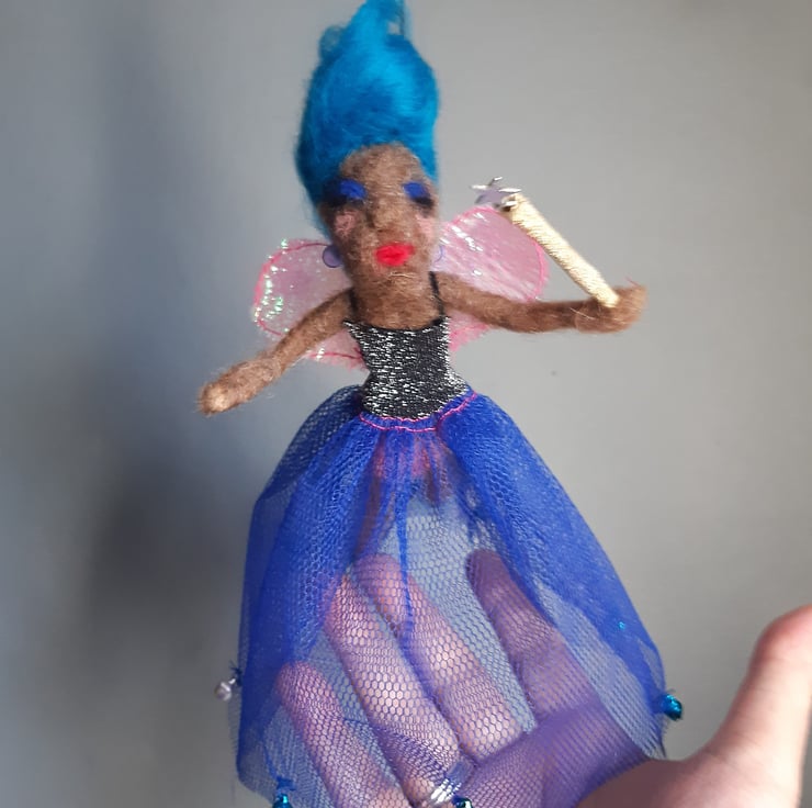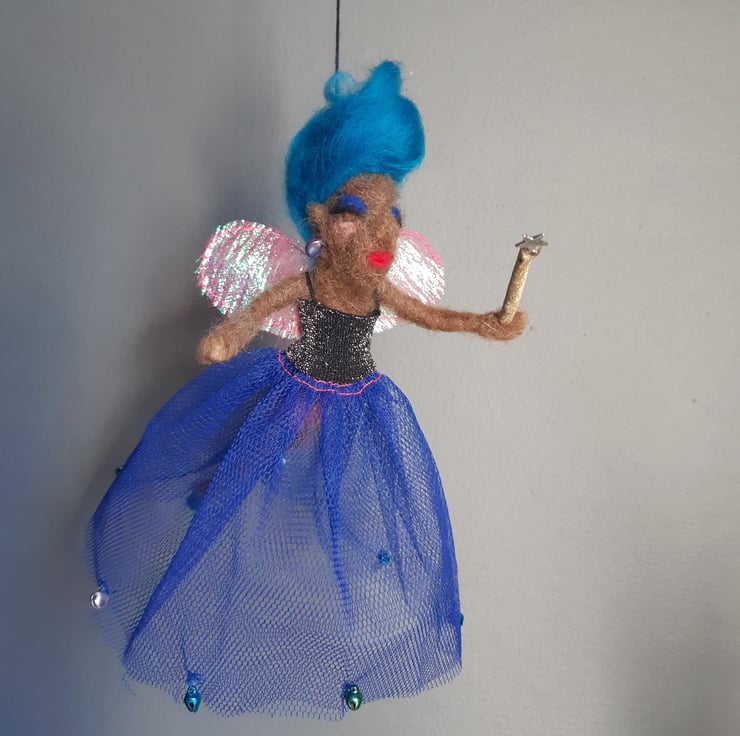 Brown skinned fairy, Blue fairy, Christmas tree topper, Quirky ornament, Hand made fairy