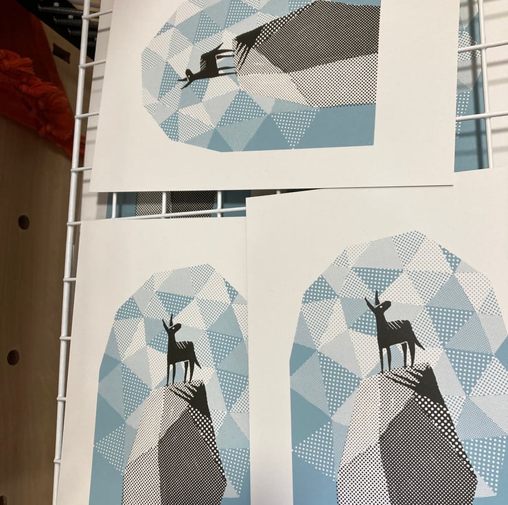 Printed by myself in Sheffield, UK. Each one is slightly different, as is the nature with screen-prints.