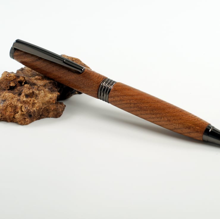 This pen was hand turned by me in my workshop in Suffolk, the metal parts are Gunmetal finish, Included in the price is a black card presentation box
