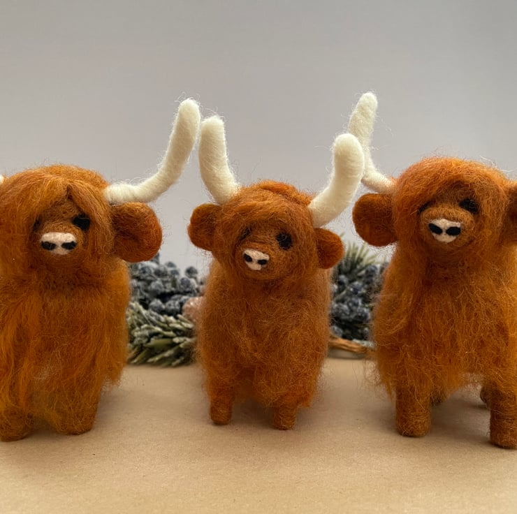 I love highland cows and have practiced and practiced since I started needle felting to make a highland cow I was happy with. I feel that I succeeded, I hope you agree! I just love how they are all a little different and all have their own individual personalities.