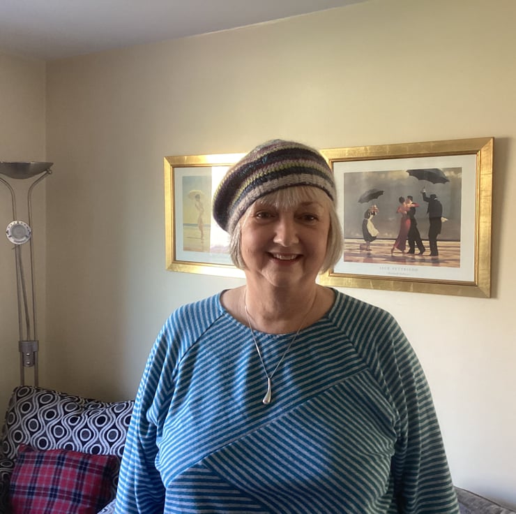 I was on holiday and had some lovely wool left over from a shawl project so I sat on a sunny balcony overlooking the sea thinking happy thoughts and knitted this stylish hat.
