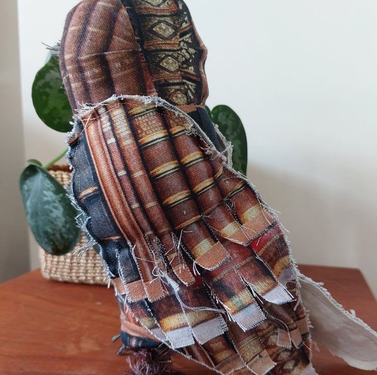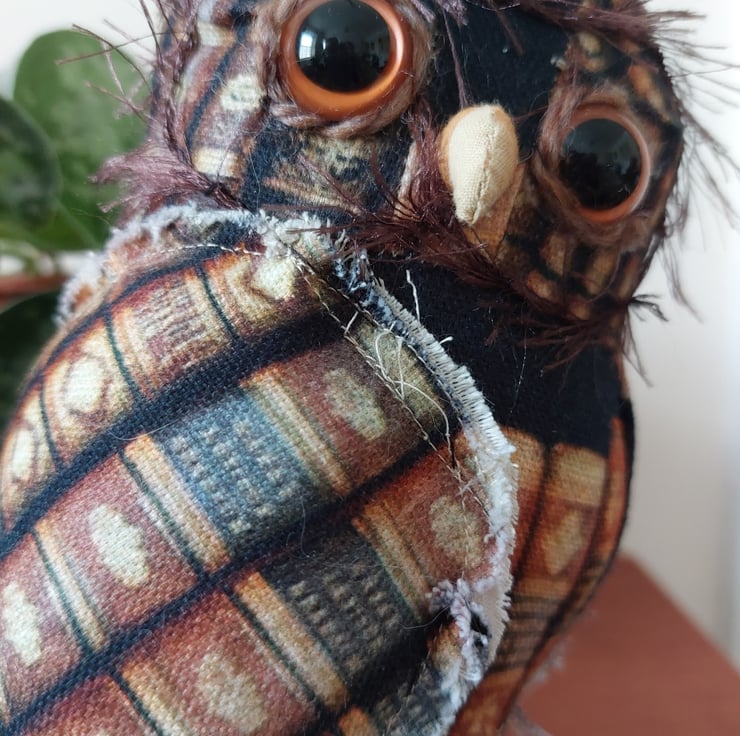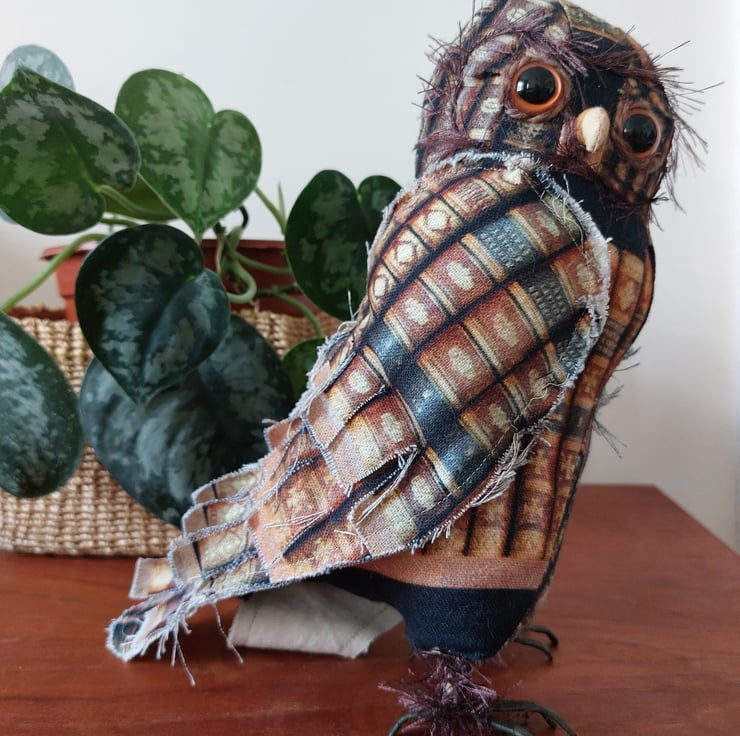 This bookshelf print lent itself to the plummage of this owl. I liked the idea that it has become wise from all the books it has read!