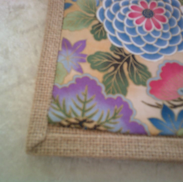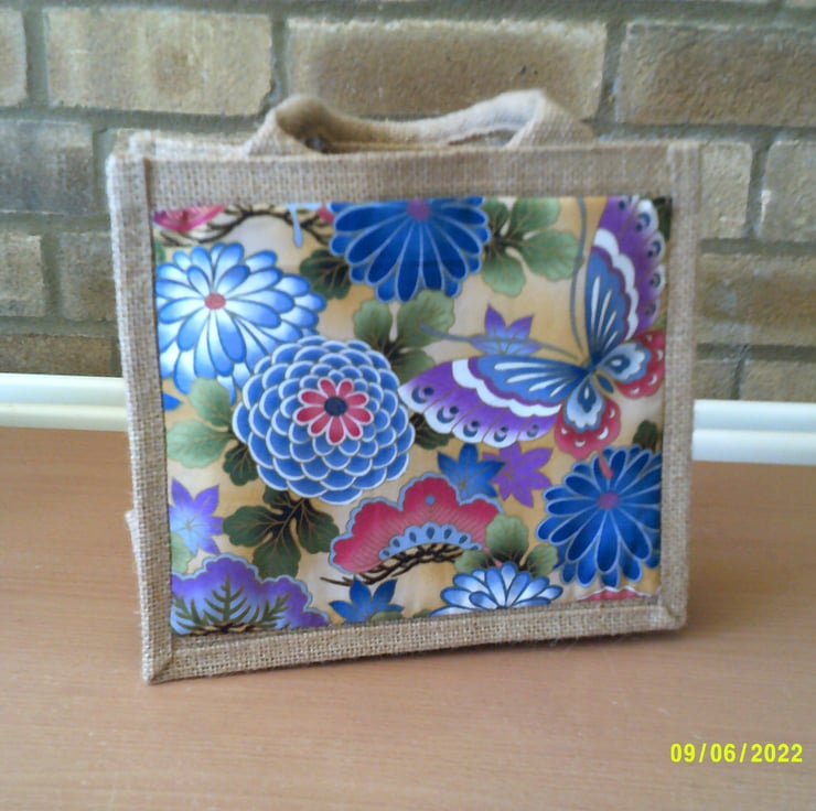 This Natural Jute bag comes with a 100% Cotton lined pocket with a Velcro fastening on one side which is very handy when out and about for popping your phone, keys or purse in. Ideal for using on a trip to the theatre to pop your treats in or on a day trip - especially if you don't want to take a handbag - you have a 2 in 1 with this bag.