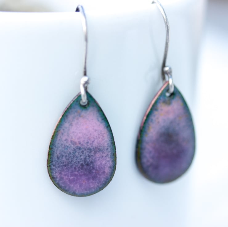 Due to the technique of enamelling and how the enamel is applied, there will be slight variations to the image shown. If you would like me to email you a photo of your earrings before I post them, please ask, I’m always happy to do this.