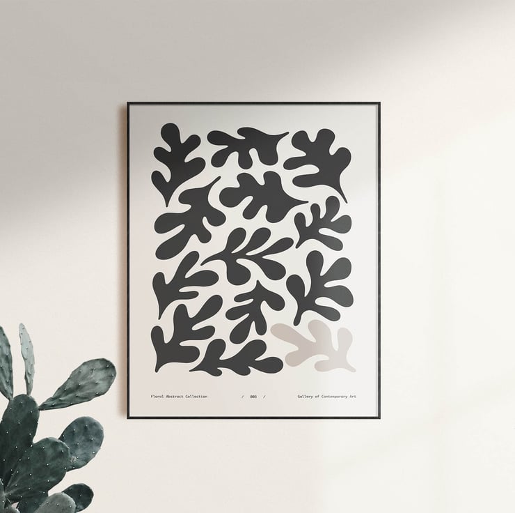 Contemporary style poster with abstract flower shape in neutral shades, to complement Andy home. Print 003, Floral Abstract collection