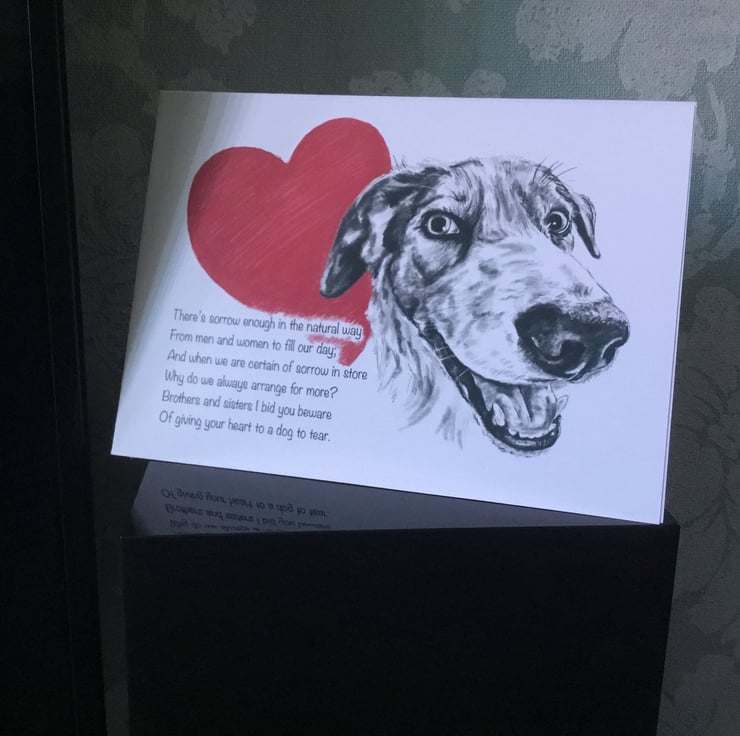 Border Collie with part of the poem The Power Of The Dog by Rudyard Kipling.