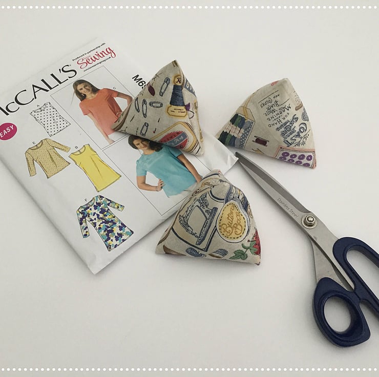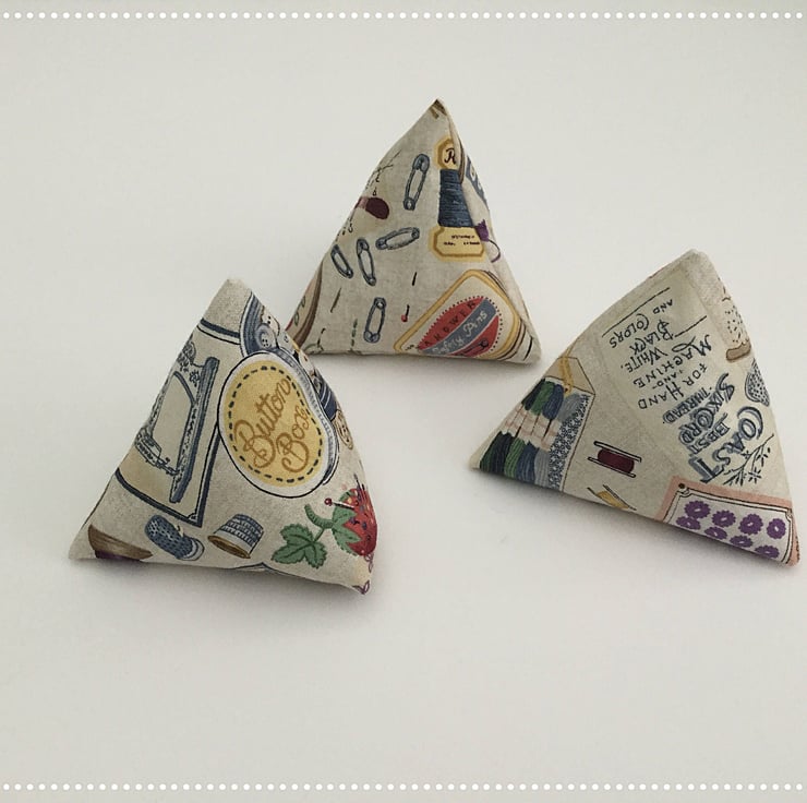 A really pretty yet useful set of 3 triangular pattern weights for use in dressmaking and general cutting out