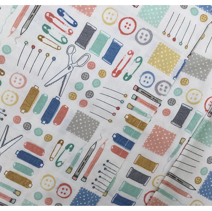 This is a great fabric sewing organiser and is also handy and practical. It is made from a lovely sewing notions fabric, consisting of haberdashery items such as scissors and threads etc.