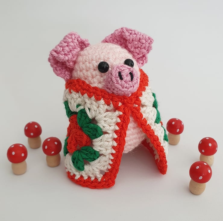 This little piggy is wrapped up in a red, green and cream cotton blanket. He measures approx 8cm tall. Please see my other listings for more colours!