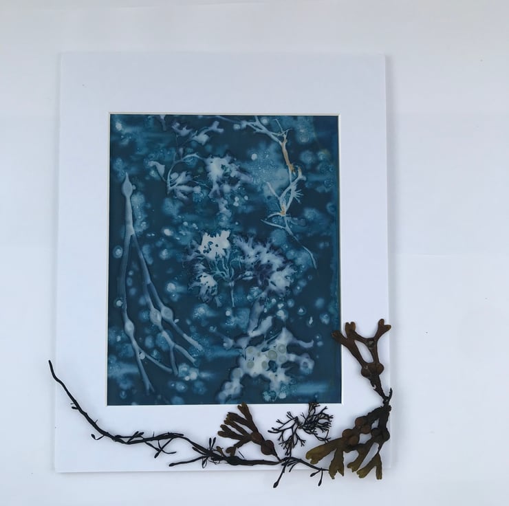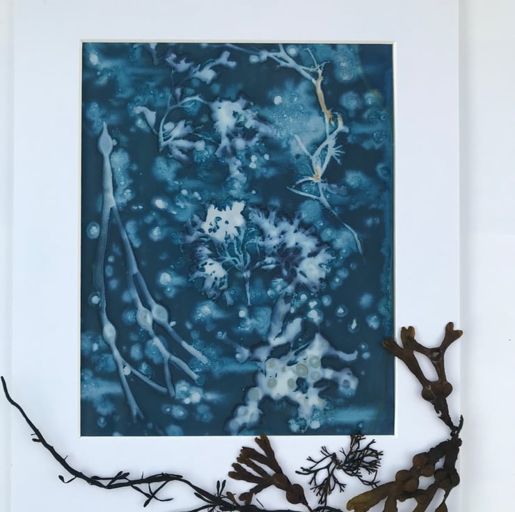 Part of a unique collection of Cyanotype photograms, showcasing Seaweed I collected from the coast of Jersey in the Channel Islands.