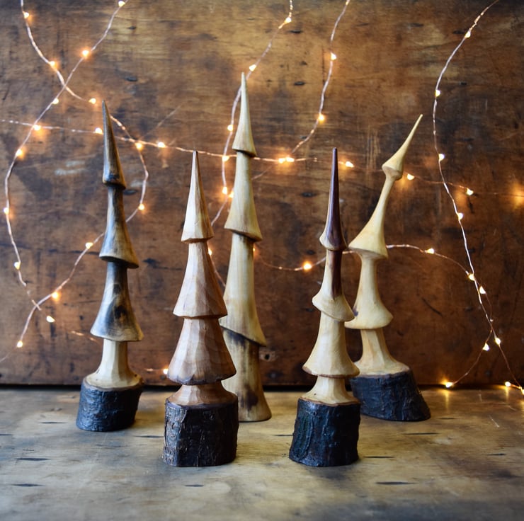 The Christmas trees I carve all have their own character, some quirkier than others! They make attractive decorations by themselves and also look eye-catching when several are displayed together.