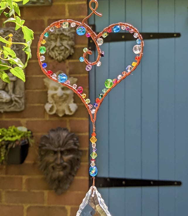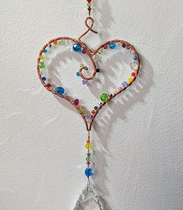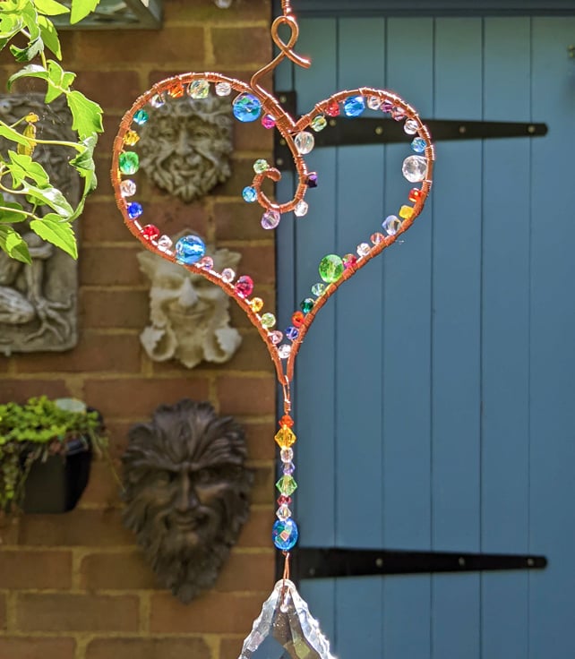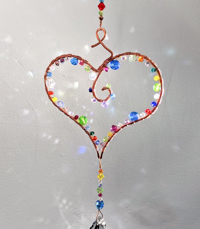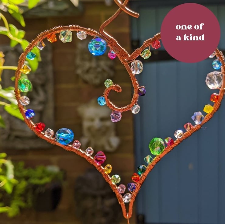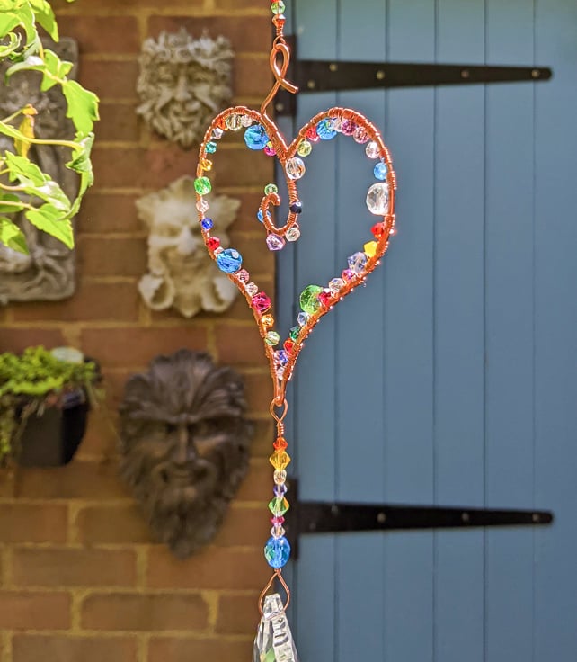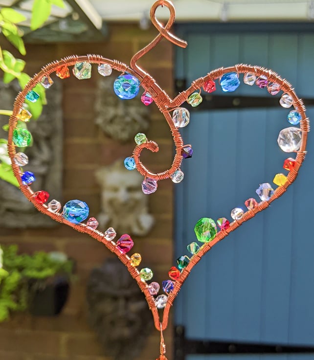 We have created a heart shape and hammered it to give a texture and wire wrapped the beads into place. It is ready for hanging.