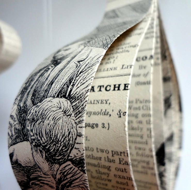 This is a set of six unique Christmas decorations, made using strips of antique book paper. Each one is handmade made from a wonderful paper taken from books of vintage children's stories. Though just to add, I don't use rare or valuable books for these ornaments, only books that are damaged or otherwise unreadable.