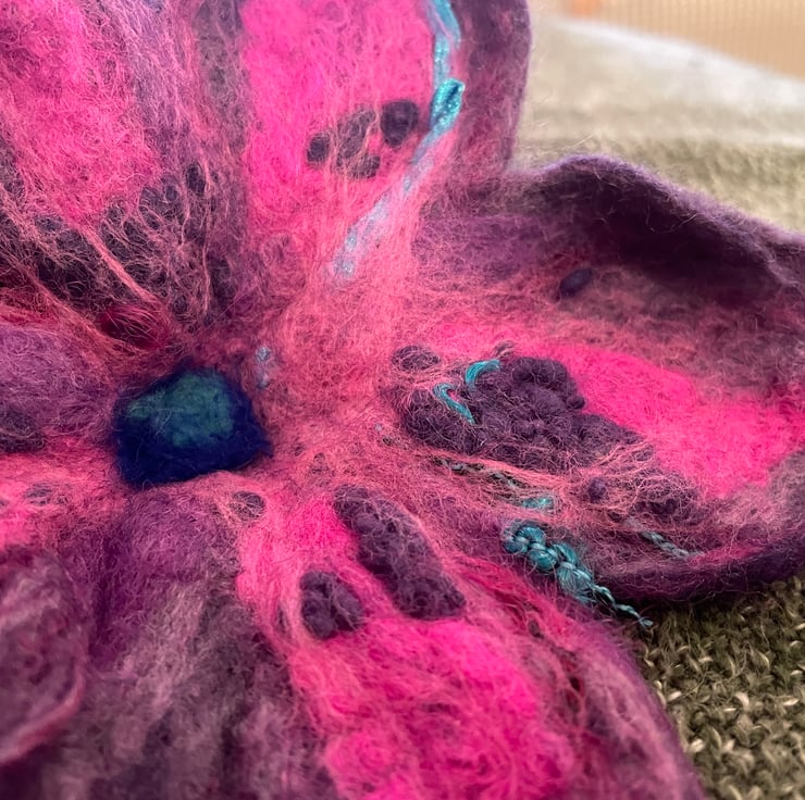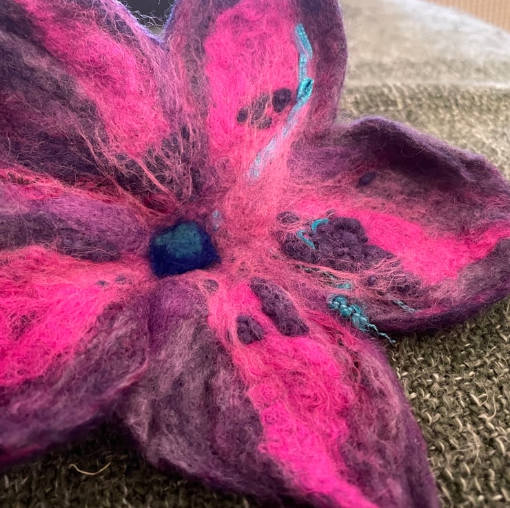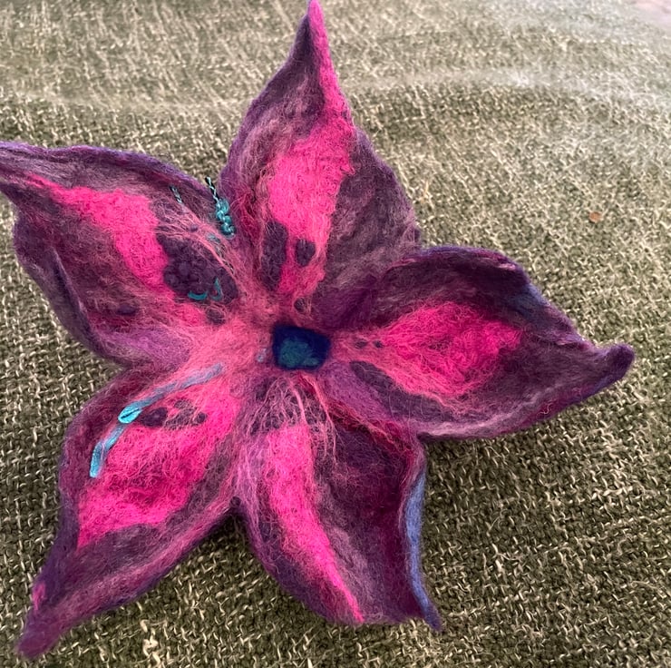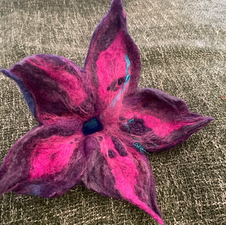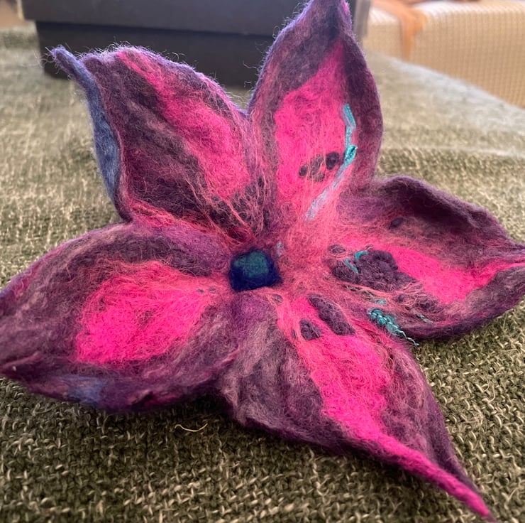 This beautiful Purple Brooch was made by me, by hand without the use of patterns, using the best soft organic merino wool in the wet felting technique.