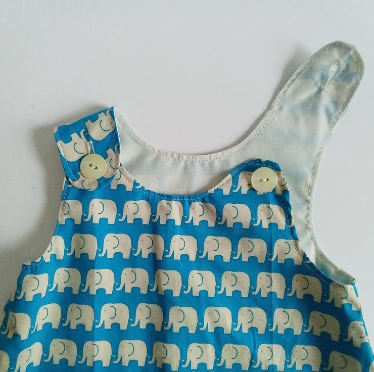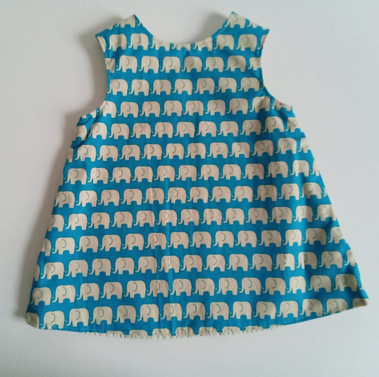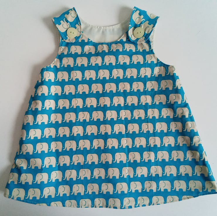 A line style dress/pinafore in cotton poplin with an elephant design Fully lined with Polycotton.