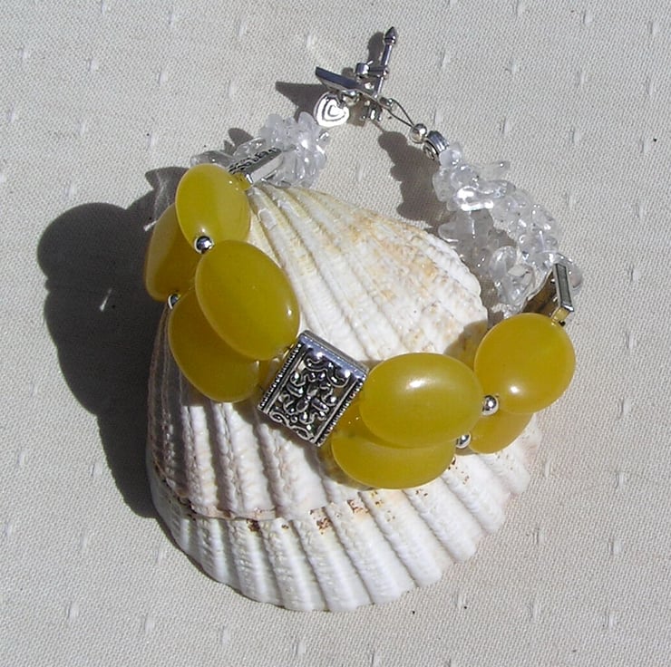 Yellow Jade & Clear Quartz Gemstone Crystal Bracelet