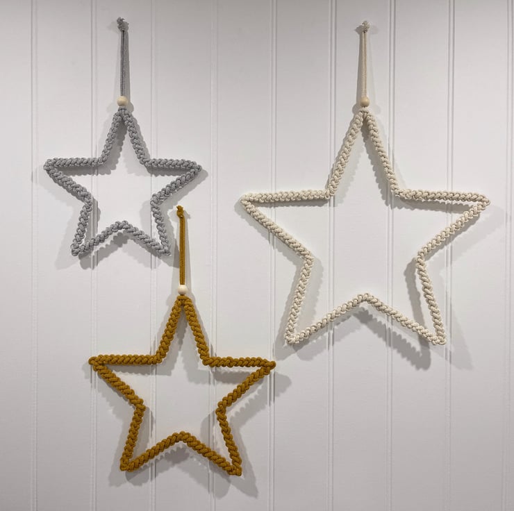 These Macrame Stars look lovely hung walls, doors or displayed on your shelf or mantelpiece. Perfect for adding a touch of of modern minimalist style to your Christmas decor or to give as an eco friendly Christmas gift.