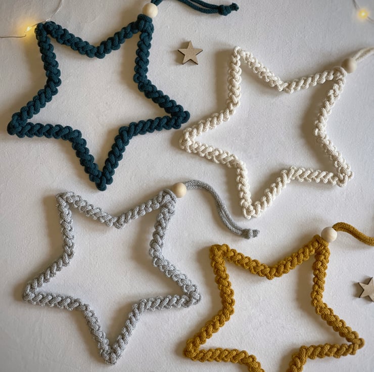Each Star is carefully handmade to order in my studio in Ashbourne, Derbyshire. They are 100% plastic-free and made using premium quality recycled cotton cord. For every order made - I also plant a tree!